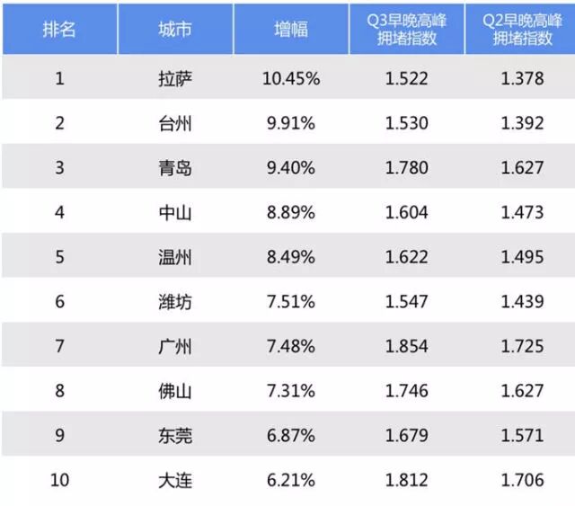 在全国100个主要城市拥堵排名中,